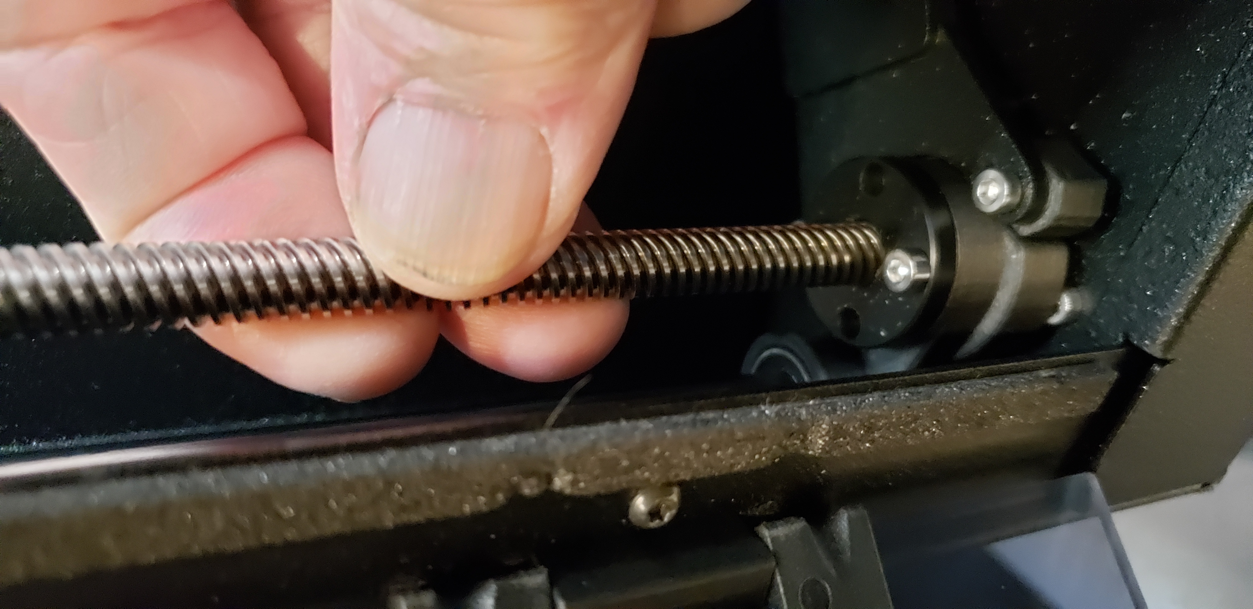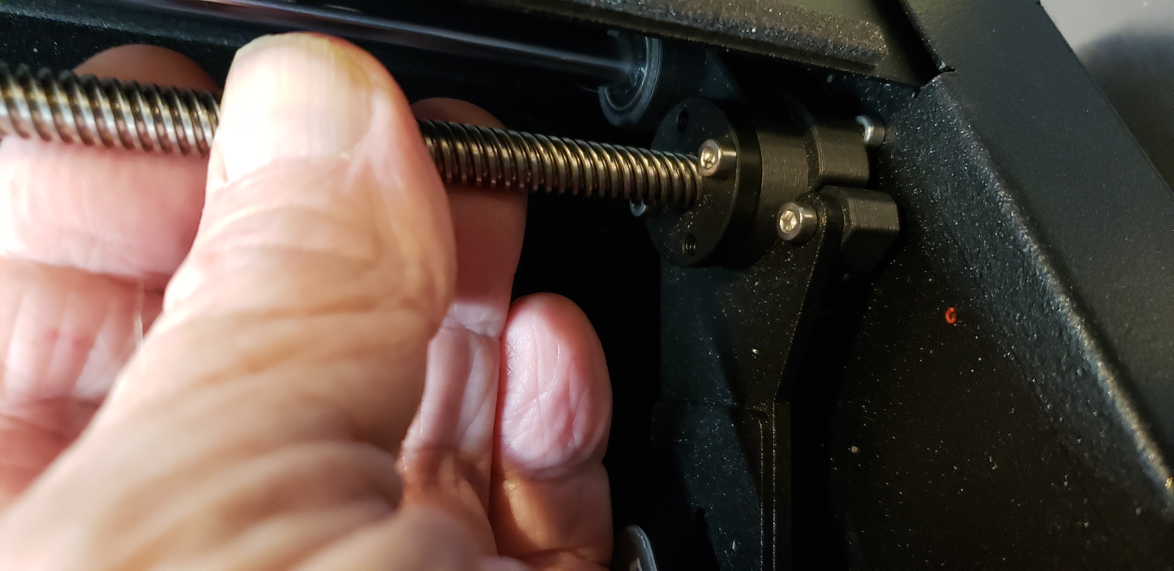 - Manually rotate each of the three threaded shafts counterclockwise (as seen from above) to move the print bed to its lowest position:
