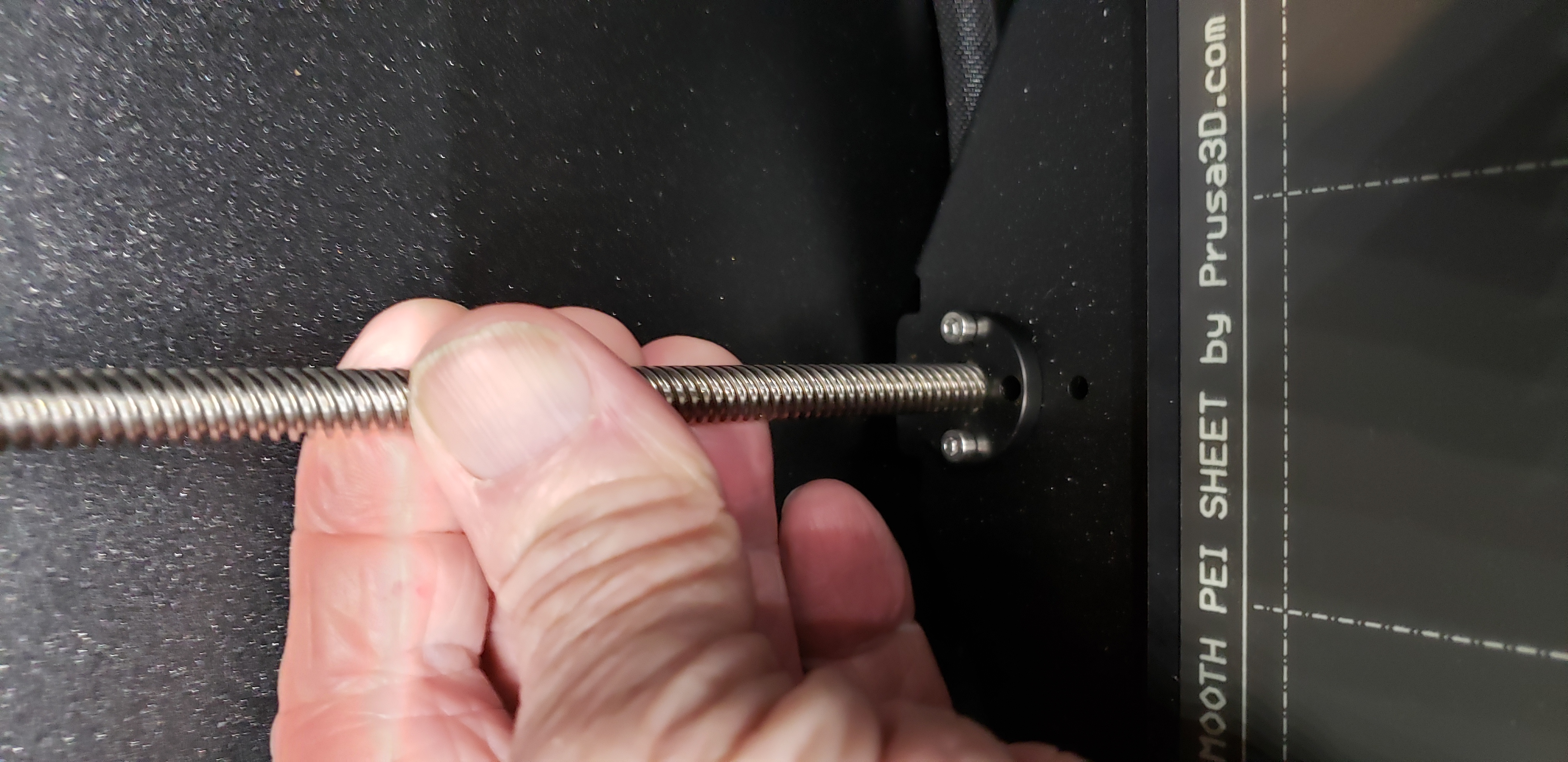 The Prusa Core One is designed so that, when the three shafts have been rotated counterclockwise to the degree possible with power off, the print bed will be level. Then, during printing, because the print bed motors are synchronized with each other, the print bed will remain level at all other positions.