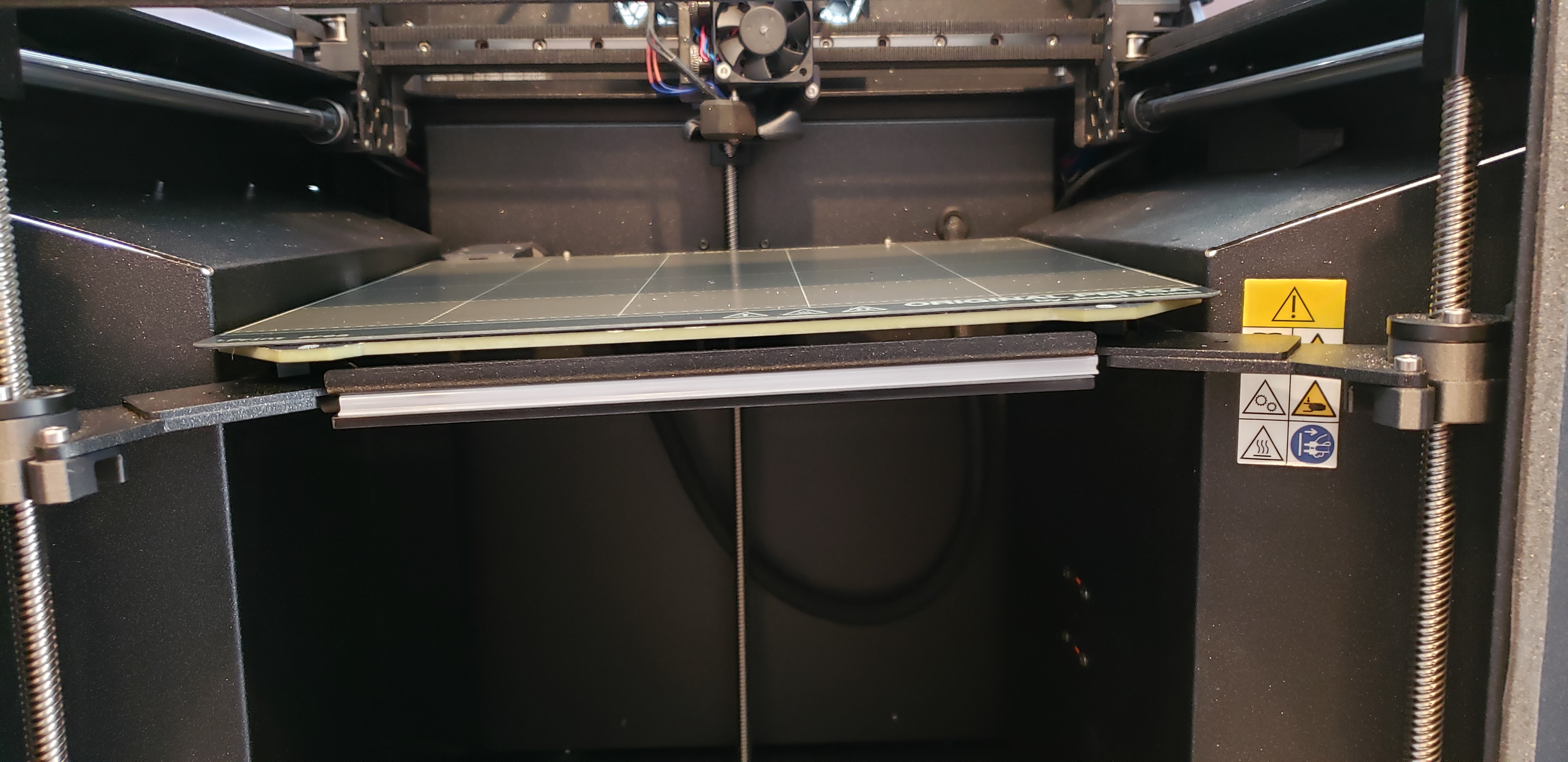 - As the print bed arrives at its lowest position, this will likely be accompanied by a grinding or clicking sound — this is harmless but at that point, stop the motion inputs.