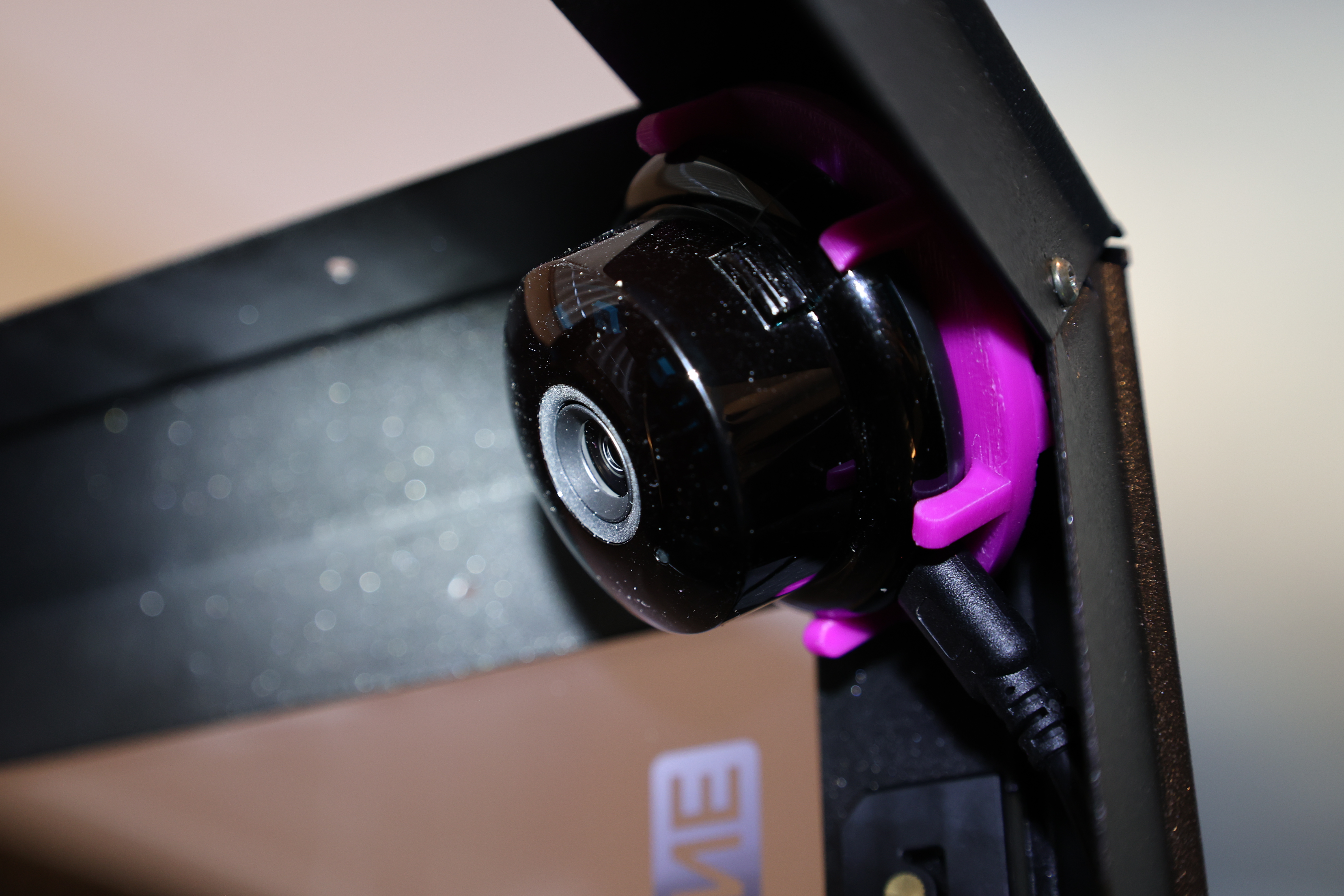 Mount with magnets and Yi camera- Here is the camera mount, correctly positioned at the front upper left interior of the Prusa Core One enclosure: