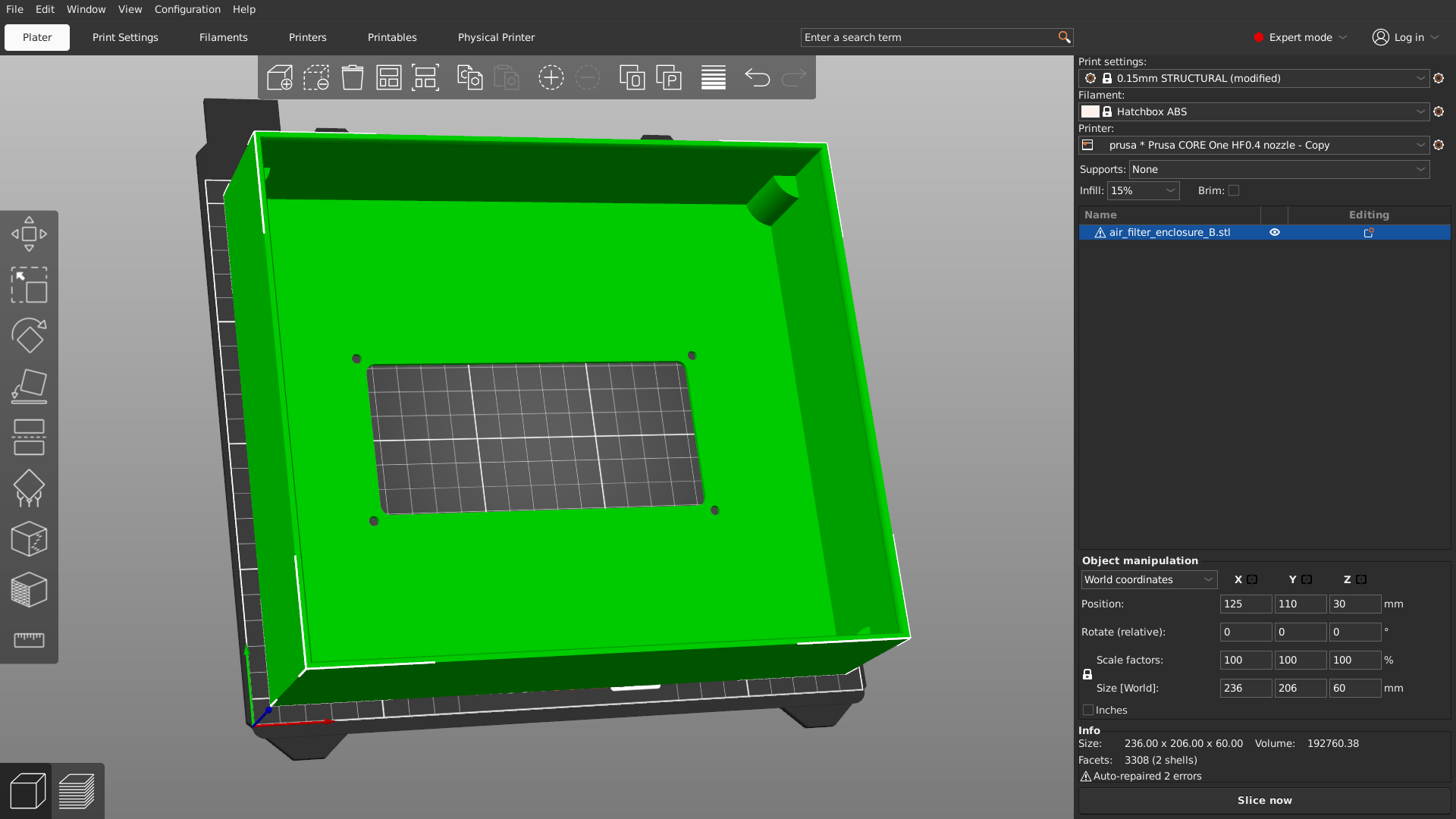 This article assumes you have a working Prusa Core One, either a factory-built machine or a completed kit. This article goes beyond the instructions provided by Prusa and offers some configuration and tuning advice not found elsewhere.