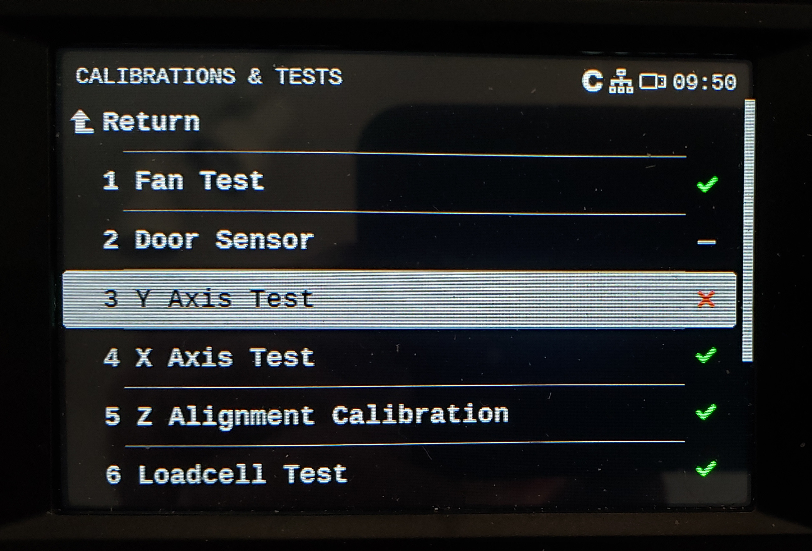 - One confirming test for this procedure is that your printer will pass its Y axis test, and will correctly print large objects and test patterns:
