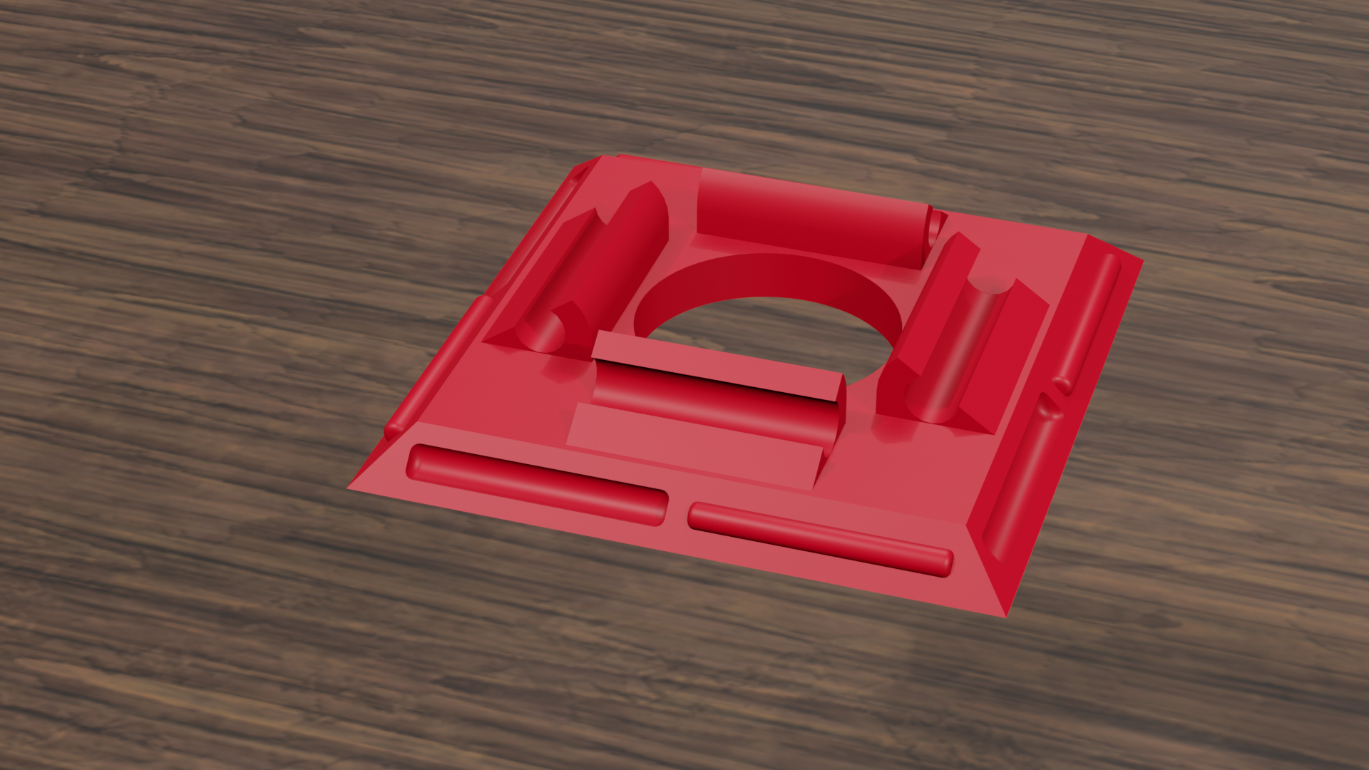 Design one surface of a multi-sided geometric object, making sure to include mounting points for magnets. Here's a SolveSpace design image for one surface of a small cube (source listed below):