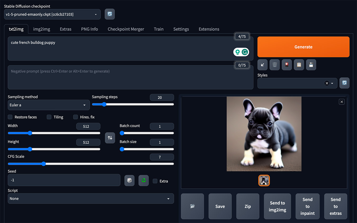 AUTOMATIC1111 / stable-diffusion-webui — This is a free, open-source, very popular software suite that provides the StableDiffusion engine plus a popular local-Web-based user interface. Very powerful, easy to learn. Setting up requires a modest amount of technical knowledge. The user interface looks like this: