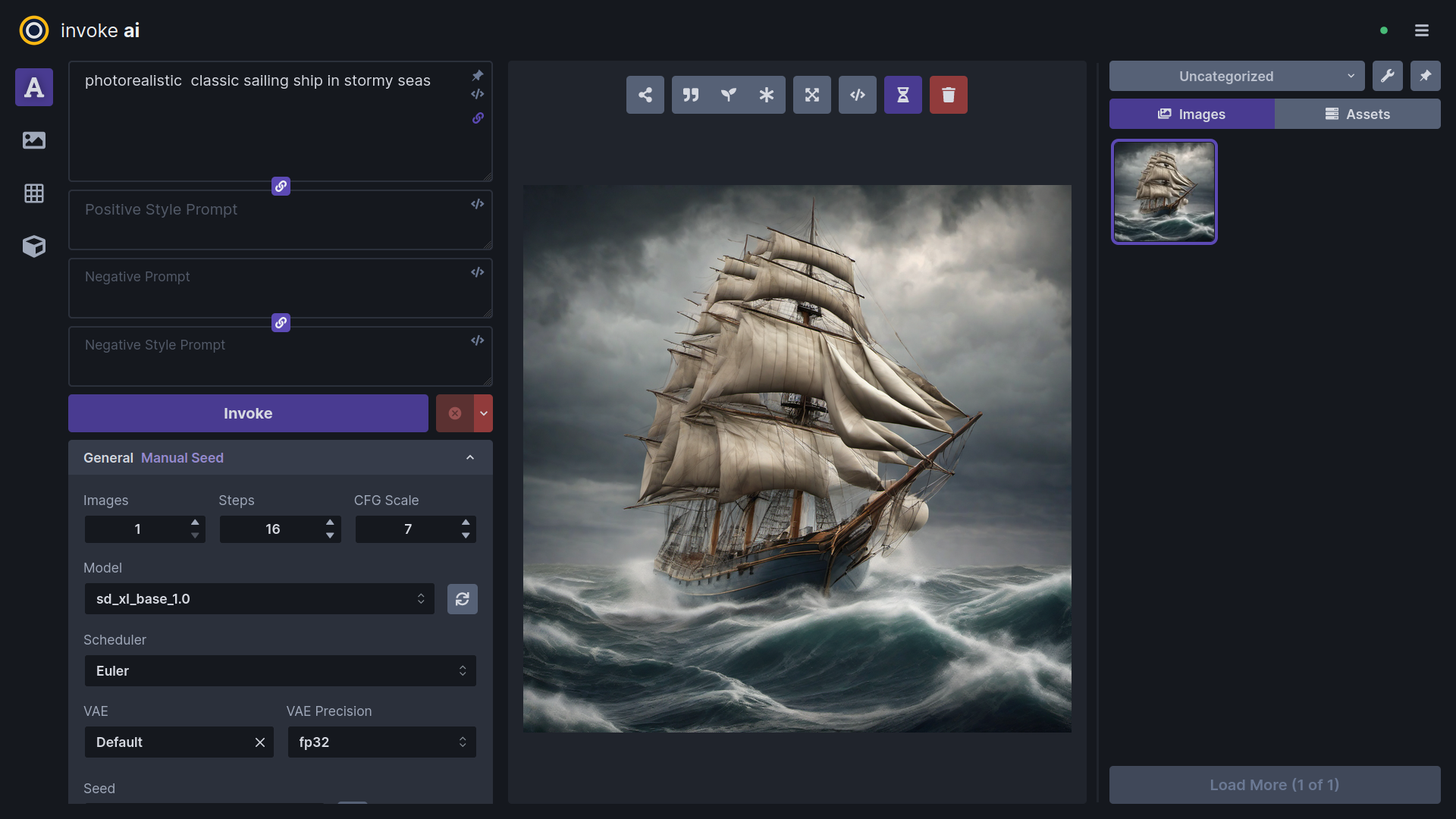 InvokeAI — Also free, a somewhat large install, significant technical knowledge required, has a nice browser-based user interface. This choice requires more of the client system than AUTOMATIC1111. Here's a picture of its user interface: