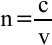 c/v, the ratio of the speed of light in a vacuum divided by the speed of light in the material in question.