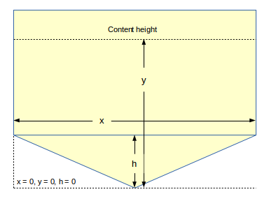 If the y content height is greater than or equal to "h", the solution volume has two parts: