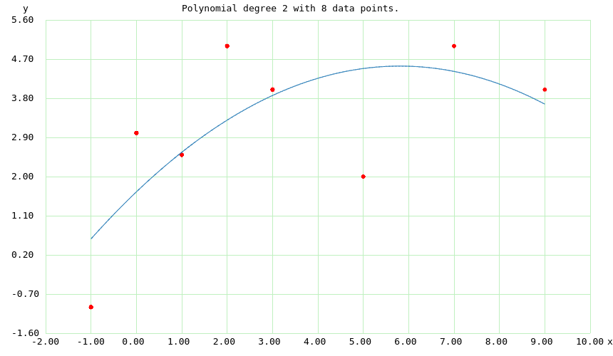 Now move to the "Regression" tab, select a polynomial degree of 2, and press Perform. Move to the "Graphic" tab to see this result: