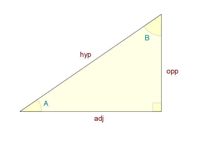 hyp & A $ \displaystyle hyp \, \sin(A)$ $ \displaystyle hyp \, \cos(A)$ $ \displaystyle \frac{\pi}{2} - A$