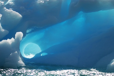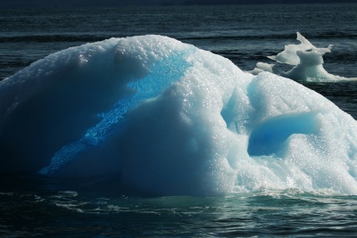 Not unlike the color of the atmosphere, a pleasant blue when there is nothing but air to process the light, in icebergs the prettiest blue color emanates from the purest, oldest ice.