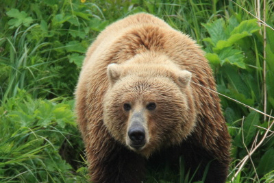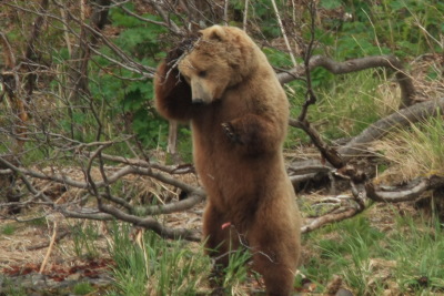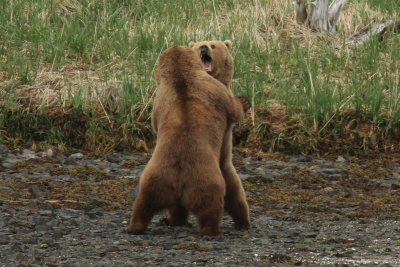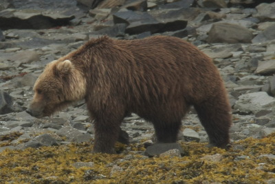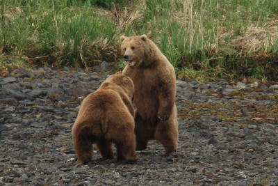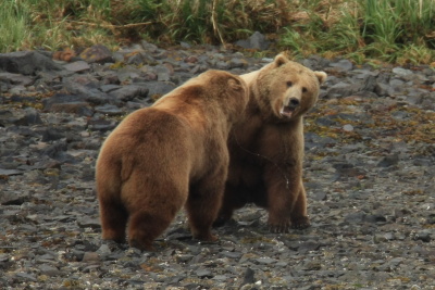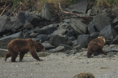 I saw somewhat fewer bears this year than in years past, but they were doing a number of interesting things. In one case, a conspicuously pregnant female bear was trying to secure protection from a male, but the male just couldn't figure out what she wanted and kept chasing her away. This was one of the oddest things I had ever seen among bears. Female bears are not usually pregnant in the summertime, it's very bad timing for the cubs who are normally born in the winter or early spring, in the protection of a snowy den. A female bear that gives birth in the summertime is very likely to lose her cubs, and this bear knew it.