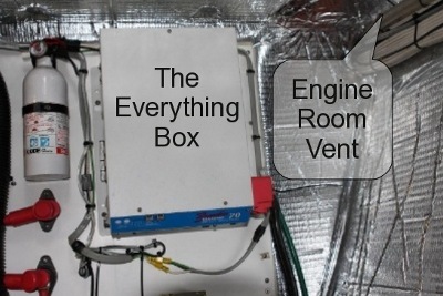 During a later inspection I discovered that the Everything Box, touted as suitable for the marine environment and priced accordingly, had ordinary, bare circuit boards inside, and because the solid-state inverter must handle rather high voltages, even a small amount of salt water can and will produce a spectacular failure. In this case, the unit self-destructed in a dramatic way, burning and melting its insides beyond repair (the Everything Box manufacturer claims they now coat their circuit boards to try to avoid this problem).