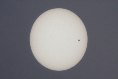 With this result (big dot = Venus, small dots = sunspots) |