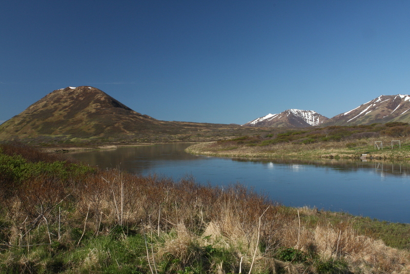 There's a trail that starts at the west end of Larsen Bay (the bay, not the town) and runs out to the Karluk River, through some very beautiful Alaska countryside. It's not to be missed — you'll think you've died and gone to heaven. Here are some views along the way: