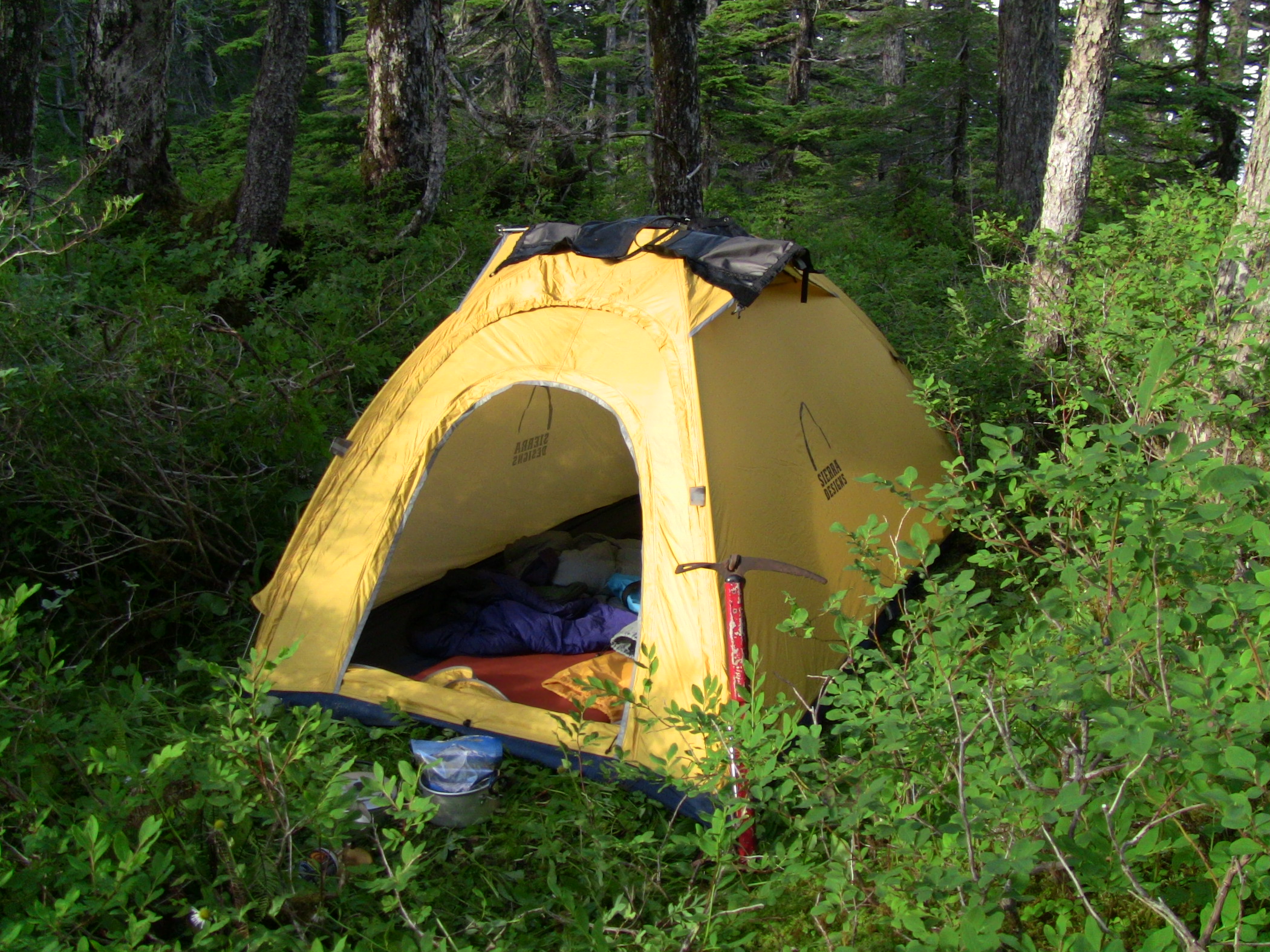 Naked Island is located more or less in the middle of Prince William Sound (PWS) and has some nice hikes. But more important, there are no bears, so camping is an option. Each season I try to hike up to a nice camping spot in a saddle near the highest elevation on the island: