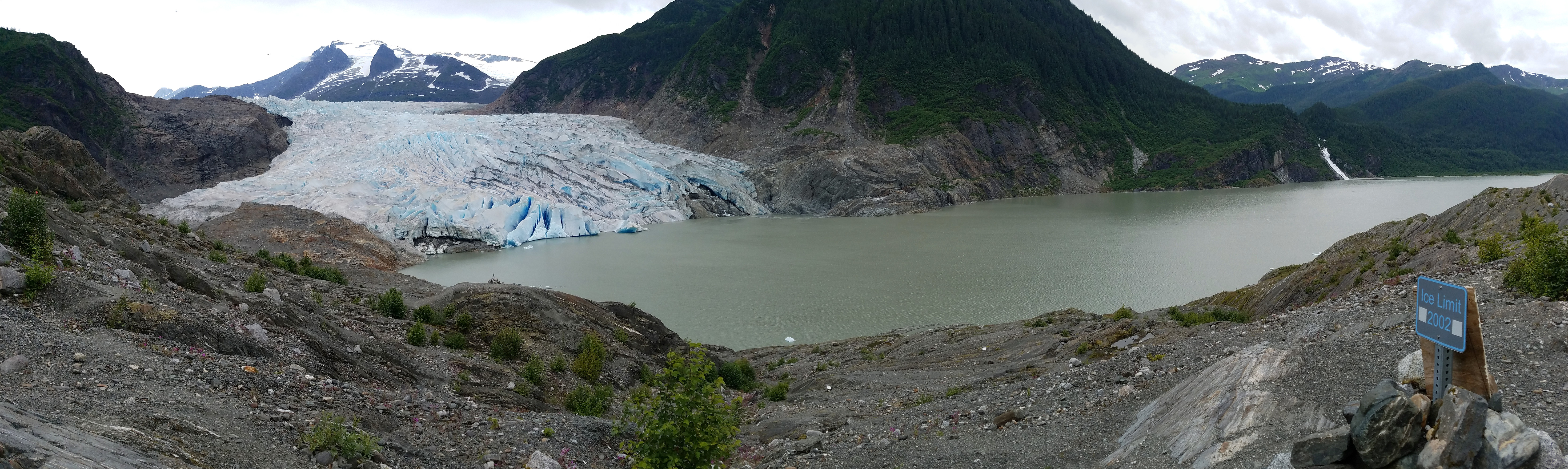 Mendenhall Glacier is located near Auke Bay, just north of Juneau in southeast Alaska. It is one of the fastest-melting glaciers in Alaska. Here's this year's panoramic view (click the graphic for more detail):