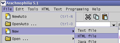 ! It's easy, really! Here are the steps: * First, create a new HTML document. Run Arachnophilia and choose File ... New ... HTML File. Like this: