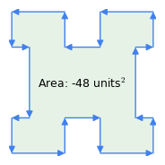 • "Clockwise Rule": the order of the vectors is significant — if the perimeter is traversed clockwise, the area result is positive, if counterclockwise, it's negative (Figure 1). It's this property of the method that subtracts the area of inflections from a complex figure as in Figure 1 — the "inflections" represent a counterclockwise traversal within the polygon.