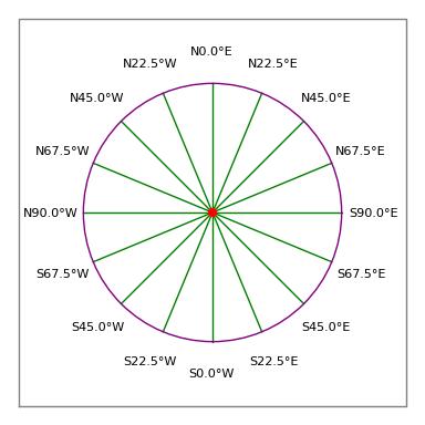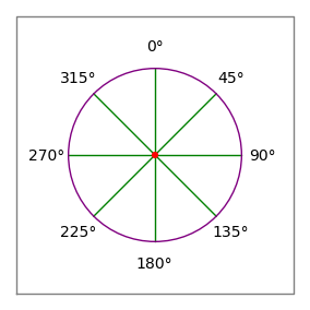 • The angles follow the compass convention — 0 degrees is up or "north", 90 degrees is to the right or "east" (Figure 2).