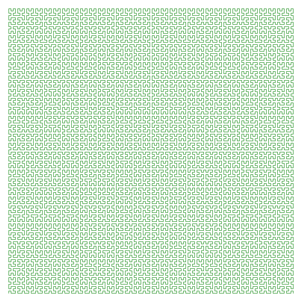 Notice about the Hilbert example that the computed area is close to 1/2 for a 1x1 surface. Ideally, without the necessity to convert a line figure into an area figure and with the right algorithm, the surface area would be exactly 1/2 that of a square of the same dimensions.