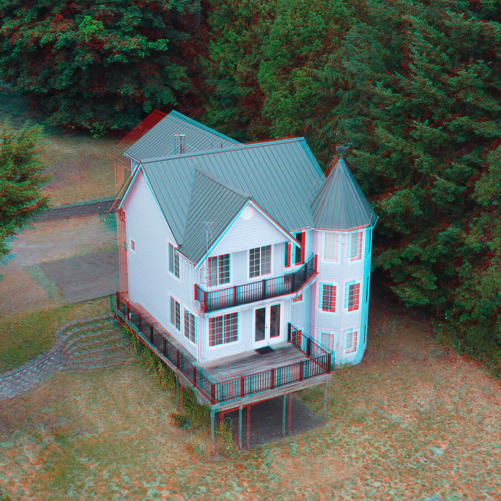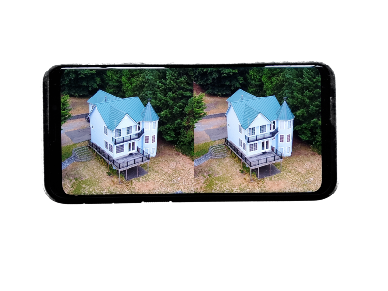 Note that the left and right image viewpoints are positioned at slightly different angles with respect to the house. I acquired these images with a quadcopter moving laterally, see technical notes below.