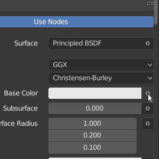 • In the list of properties, locate "Base Color" and a small circle to its right:
