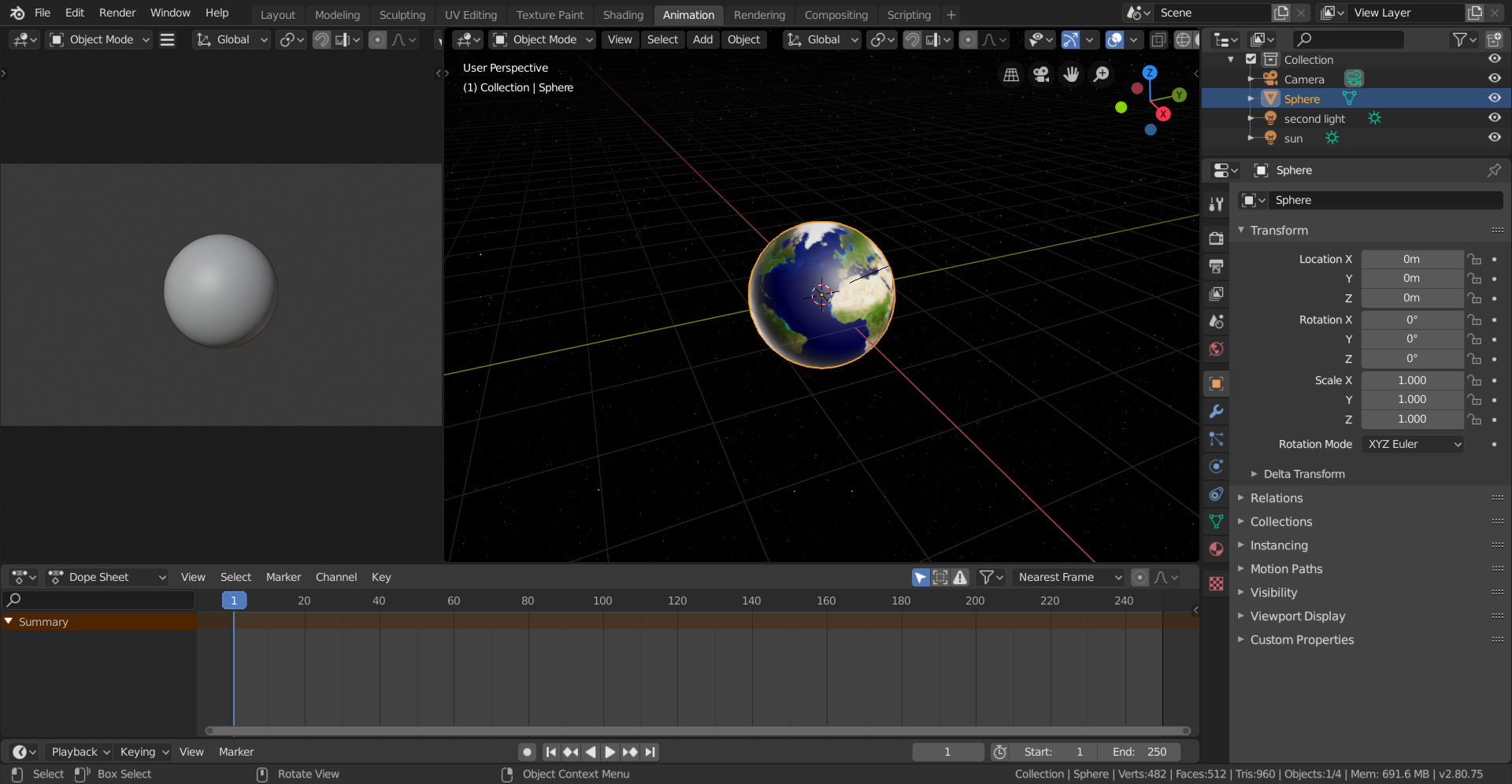 This change makes the planet move at a constant velocity, and if all the settings have been made correctly, the planet will rotate smoothly as the animation repeats (one rotation per animation sequence). The animation in Figure 1 of this article was created this way.