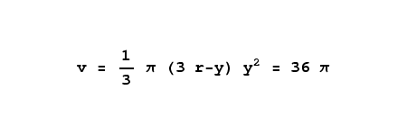 Yes, for a sphere with a radius of 3, 36 π is the correct volume. This means we can use this equation to say that, for a wine glass with an internal diameter of 9 centimeters (a radius of 4.5 centimeters) and a rim height of 6 centimeters, the volume is 282.74 cubic centimeters, a bit over 1/4 liter.
