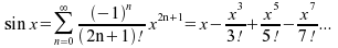This is a bit more complex than some of the other examples — it presents the Taylor Series for a sinewave, the primary method by which a computer produces a sine approximation. This example shows how many terms are required to extend the valid domain of the function much beyond the range {- ...