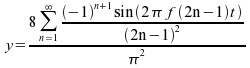 This is a Fourier Series example. It shows that virtually any periodic waveform can be created out of individual sinewave components. Adjust the value of "Control A" to increase or decrease the number of generated harmonics and the degree to which the result resembles a square wave. Triangle Wave Where:![]()