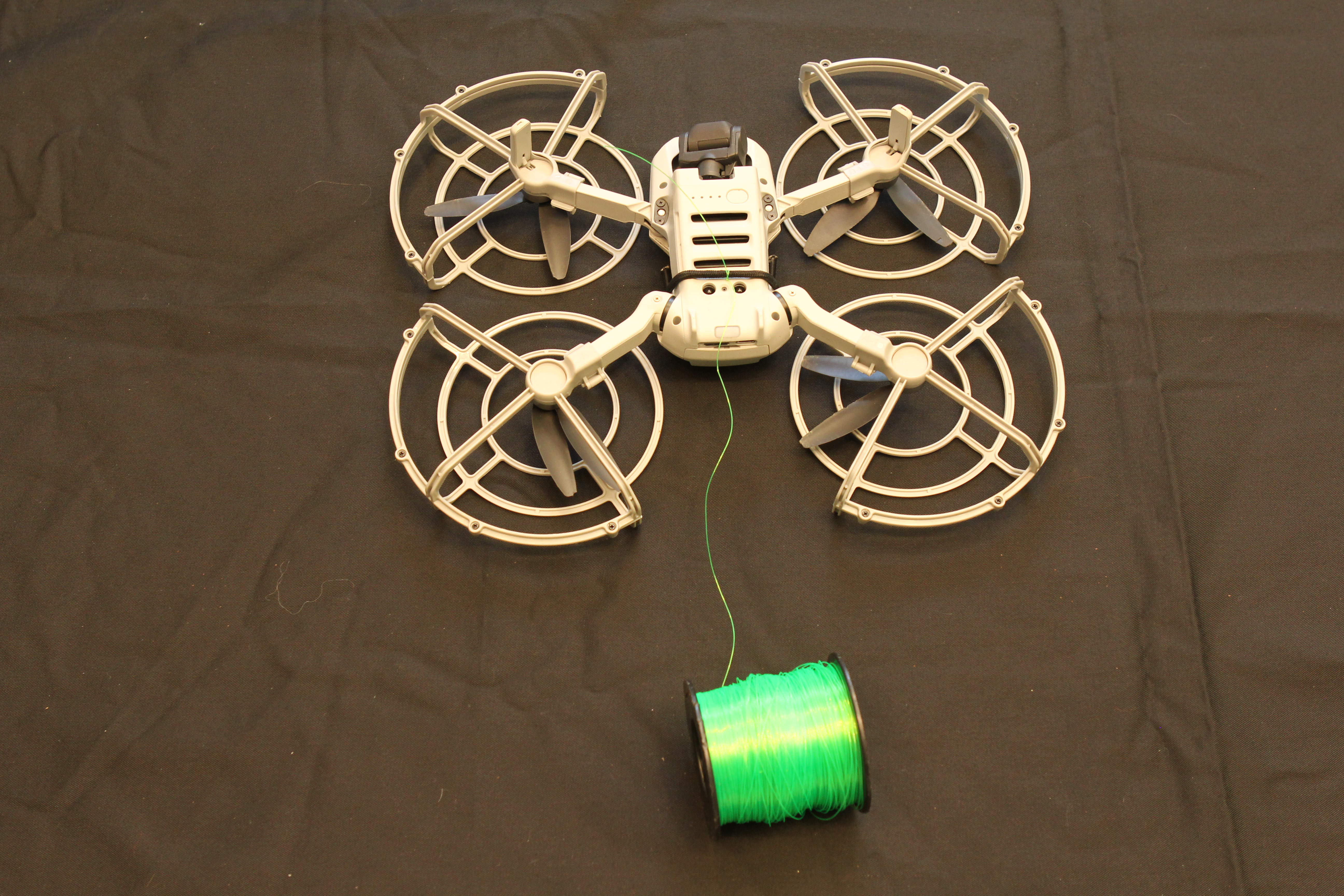 - Attach a light monofilament nylon fishing line to a small GPS-plus-camera drone, preferably one equipped with propeller guards (Figure 1).