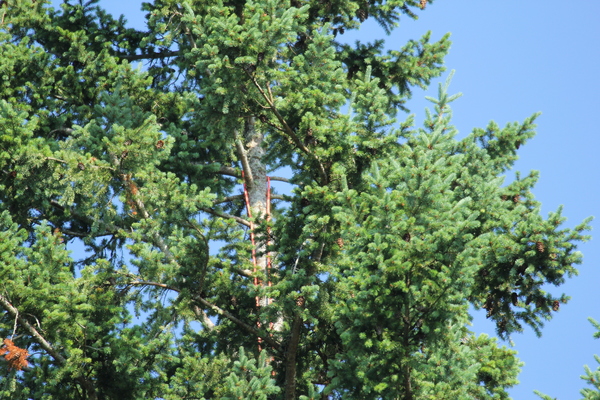 As I said above this project's evaluation target was a 145 foot (about 44 meter) conifer in my yard I had always wanted to climb, but until this project I hadn't thought of a safe and practical way to rig a climbing line.