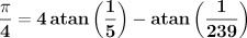 An example. In 1873, a masochist named Shanks used this equation (Machin) to compute the value of π to 707 decimal places:(1)![]()