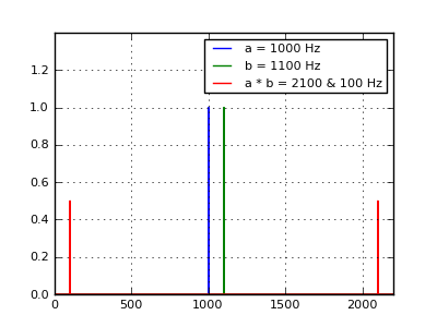 I want to emphasize about the somewhat confusing Figure 3 that neither a nor b appear in the phase detector output, only a+b and a-b (only the red lines). This in essence means that, while the PLL is in lock, the low-pass filter only needs to discriminate between $2 \times a$ and the desired range of modulation frequencies.