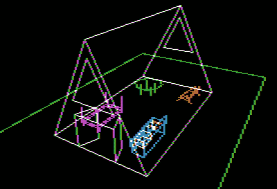 I am Paul Lutus, the author of these pages. I have been creating computer graphics for a long time. One of my first graphics programs, "Apple World", for the Apple II, became a best-seller about 25 years ago (see image at right). Early personal computers were very slow and offered little opportunity for photo-realism. In fact, your computer's keyboard chip has more raw processing power than my first computer, as does your TV's remote control and your digital watch. We've come a long way, boys and girls. Take a close look at the image from "Apple World." From a modern perspective, it's really quite terrible. But when I first wrote this program, it created a lot of excitement. I ws invited to show it on national, prime-time TV. This only tells us how far we've come in a few decades. But there is more to come. A revolution in the world of computing, now underway, will change how we create and distribute computer programs. Microsoft will become just another software company and will be forced to compete with people who actually like programming, people who think high-quality programming is its own justification. And most important, nearly all worthwhile computer programs will be free. Computers will continue to become faster and cheaper and techniques like ray tracing will become easier. It will no longer take hours or days to render a beautiful but complex scene. By reading these pages, you will acquire an advance look at that future. And I hope you will have some fun — that is one of the reasons to own a computer, right?