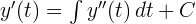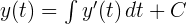 And if I have a velocity function (y'(t)), I can acquire a position function (y(t)) by integrating the velocity function with respect to time: