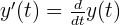 (Some may object that "velocity" should be "speed" if no direction is provided.) In this notation, y'(t) is called the "first derivative" of y(t), or y(t)'s rate of change with respect to time. And y''(t) is called the "second derivative" of y(t) — strictly speaking, y''(t) is the rate of change in y'(t) with respect to time.